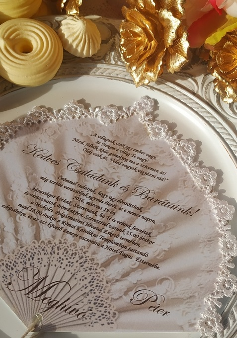 TERMÉK RENDELÉSI KÓDJA: Bridgerton-2026-1. Legyező esküvői meghívó Bridgerton stílusú esküvőhöz, kastélyos romantikus stílusú menyegzőkhöz, ha számít a különlegesség, egyediség és romantika. Csillogó gyöngyházas kartonból készül, fehér valódi csipke szegélyezéssel, bojt dísszel az alsó részén. A termék egy valódi legyező méretével megegyezik. Igény esetén más színben is rendelhető! A legyező rendelést kérjük e-mailben elküldeni a szükséges darabszám és kért szín megjelölésével: dreamflowersdesign@gmail.com